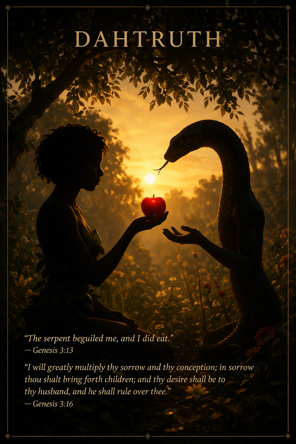 The serpent did not force Eve. He enticed her. He offered her something she wanted, knowledge, elevation, the ability to know what God knows, and she looked at it, desired it, and reached out and took it. Adam ate too. Both were accountable. But the transaction began with a desire and a deliberate choice. Nobody dragged Eve to that tree. She went because she wanted what was on it.