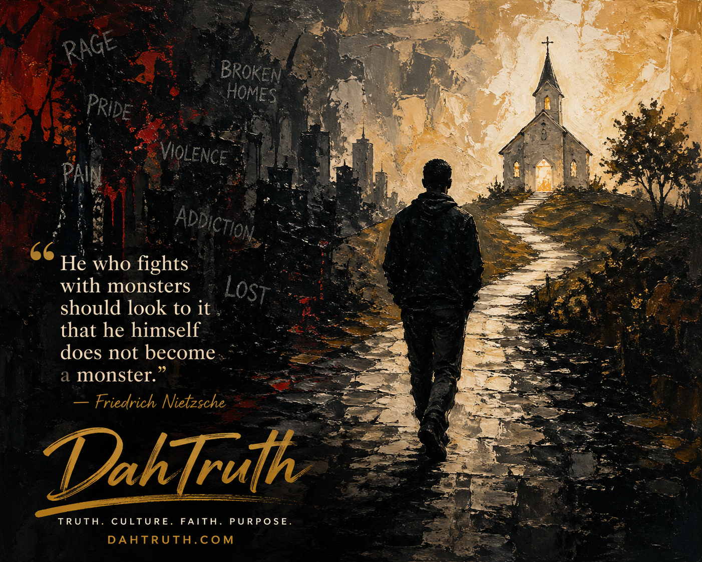 Nietzsche bet his life that man could become his own god. We are the proof of what that bet costs. The way back is not forward into more self. The way back is down. To our knees. To the only One who has ever been able to heal a people.